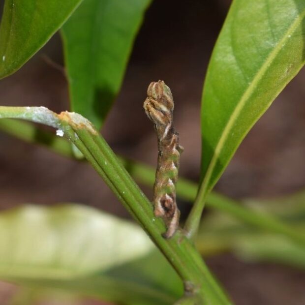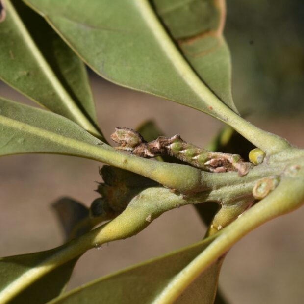 • 幼虫。 冬でもマテバシイの葉を食べる。