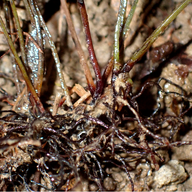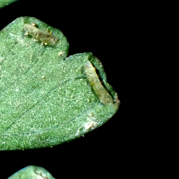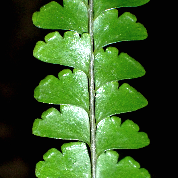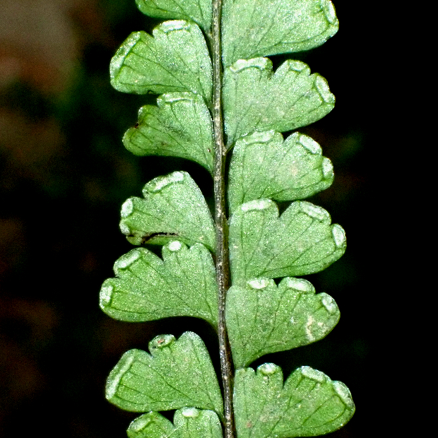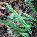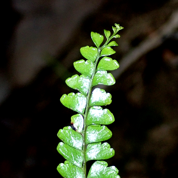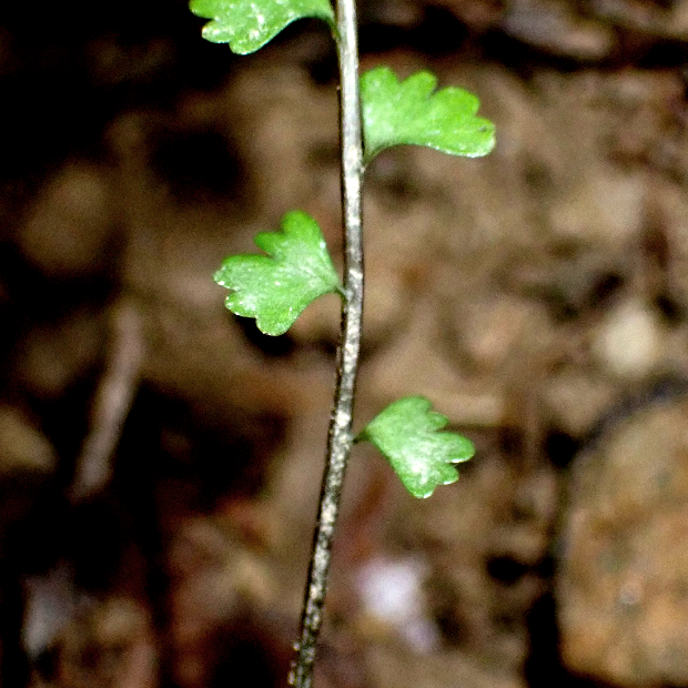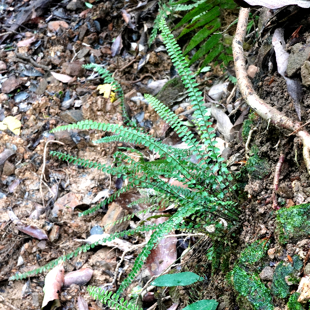 熱帯域に分布するシダで、 日本では八重山諸島の2つの島にだけ生えています。 より普通に見られる近縁のトラノオホングウシダよりも葉は小さくて細長く、 ひょろひょろとしています。 また、 根茎がより短いので、 葉が密に出る感じになります。 羽片は上側だけ2~4つほど切れ込み、 このフチに胞子のう群をつけます。