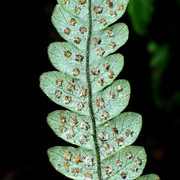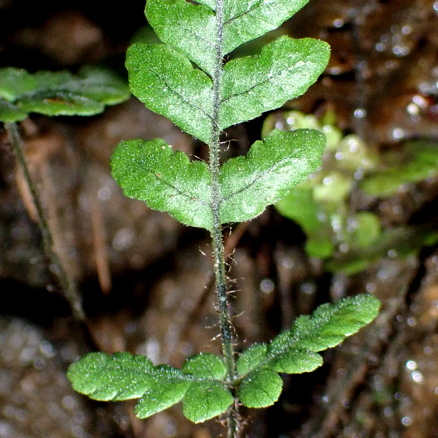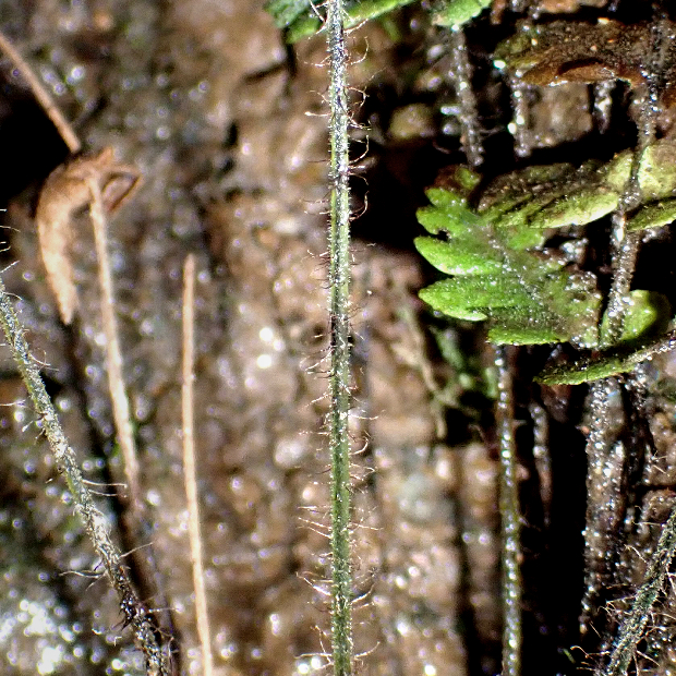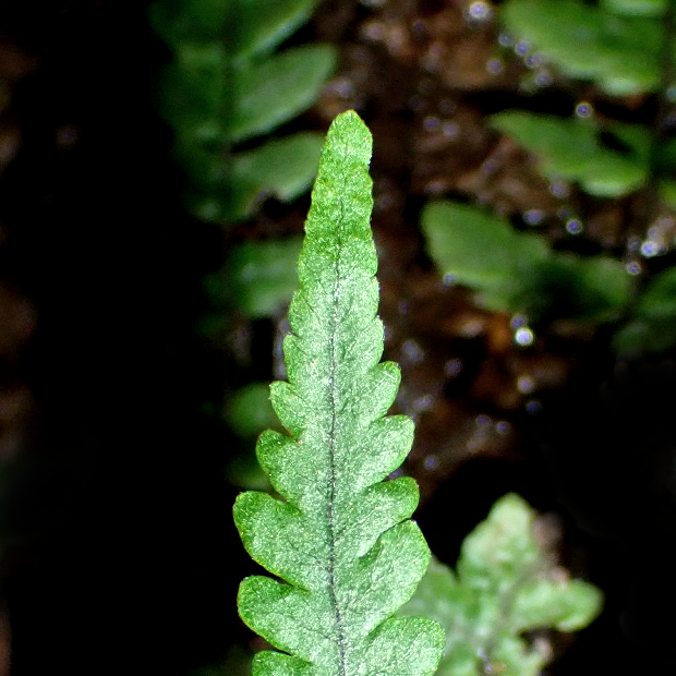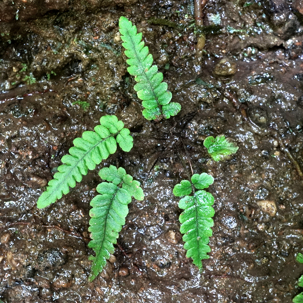 日本の南西端近くにある西表島の固有種で、 その最高峰である古見岳の名がついたシダです。 より広く分布するホラカグマが湿った岩壁に適応した姿と考えられており、 それよりも明らかに細長くて小さい葉をつけます。 ホラカグマとは、 包膜に毛が多く、 軸部分に広がる鱗片がたくさんつくなど、 共通の特徴をいくつか有しています。
