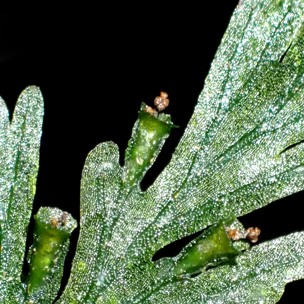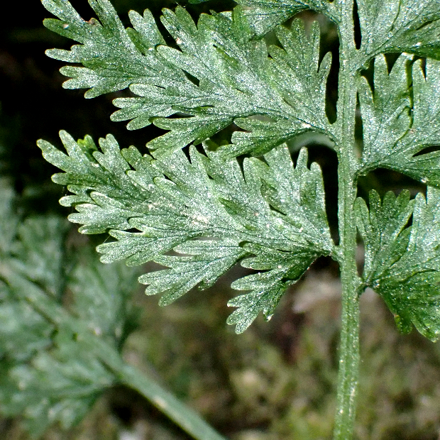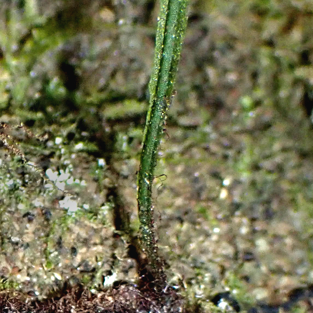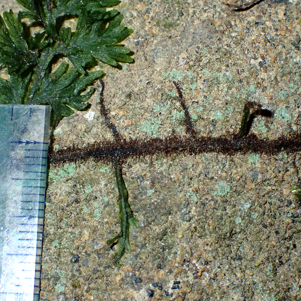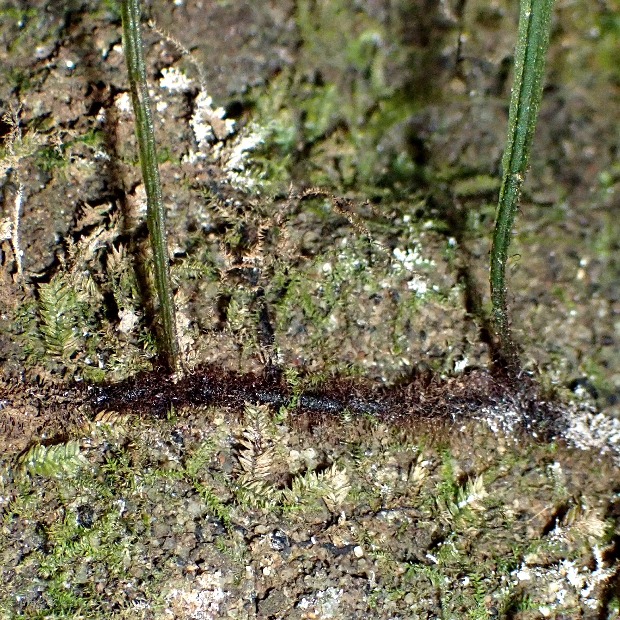 2009年に新種記載された、 世界でも神奈川県の三浦半島にだけ生育が知られているシダです。 似たものが多いハイホラゴケ類の中では、 葉がやや大きめで多少立体感があり、 根茎が幅0.8mm以上と太めになります。