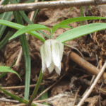 林床にある小形の植物です。 クロユリの仲間で、 つり鐘形の花が下向きに1つ花を咲かせます。