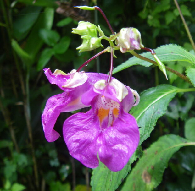 漢字でかくと「釣船草」です。 花の形が帆掛け船を釣り下げたように見えることからつけられました。
