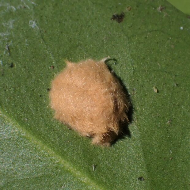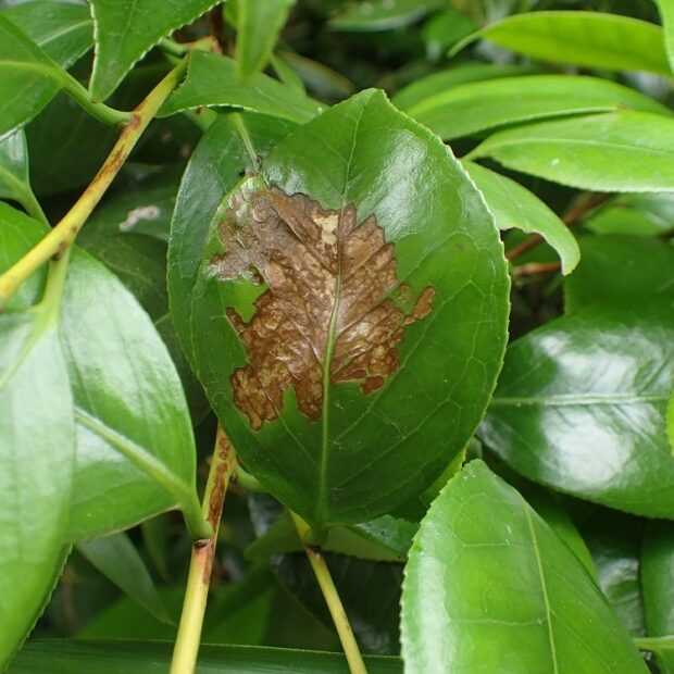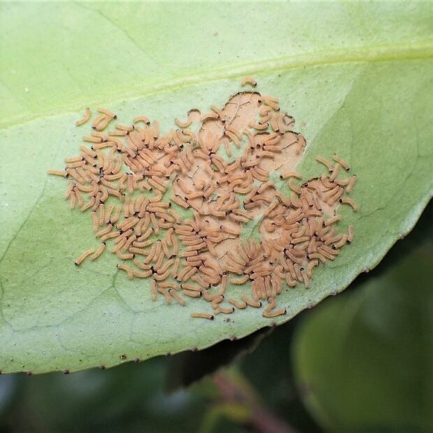 ツバキ科植物の葉っぱに食べあとや、 木の下にフンがあれば、 近づかないようにしましょう。 目に見えない細かな毒針毛が風で運ばれて、 肌に触れ、 かぶれることがあります。