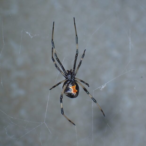 もともと日本にいなかったクモで、 外国からやってきた外来種。 メスは、 大型で派手な色合い。 強い毒を持ちます。 オスは小型で複雑な模様でメスとは全く違う色合いです。