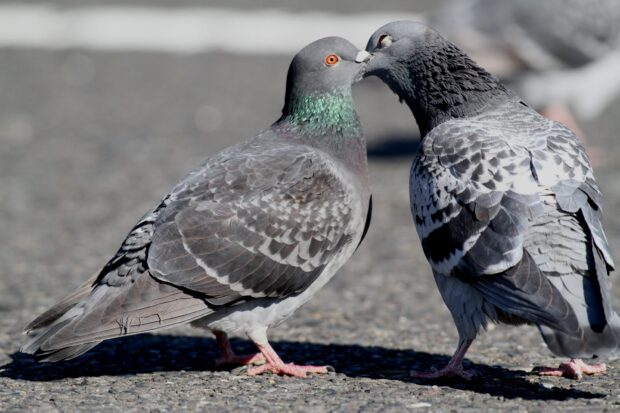集団でいることが多いです。 元々外来種のカワラバトを改良して、 伝書鳩(でんしょばと)などの目的で飼われていたものが野生化したと言われているます。 お寺などで飼われていたから「お堂の鳩」→ドバトになったと言われています。 色んな色のドバトがいます。