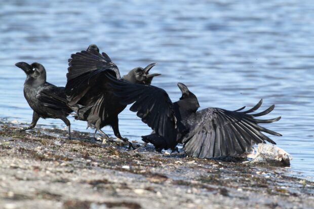 全身黒色の大型の鳥です。 くちばしが太くて額が出っぱっているのがハシブトガラス。 ハシボソガラスはくちばしが細いです。 「カーカー」と澄んだ声で鳴くもの特徴。 ゴミをあさるなどやっかいもの扱いされたりしますが、 自然界では動物の死体などを片付ける掃除屋さんの役割をします。