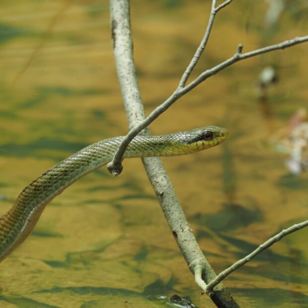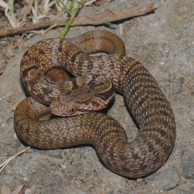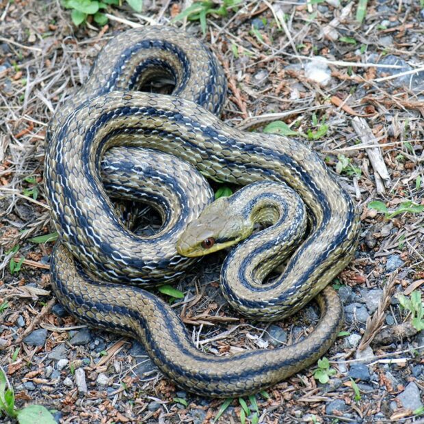 体色が黒色の黒化型個体は「からすへび」とよばれ、 本種で比較的多く見られます。