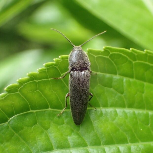 グレーの毛に覆われたコメツキムシ