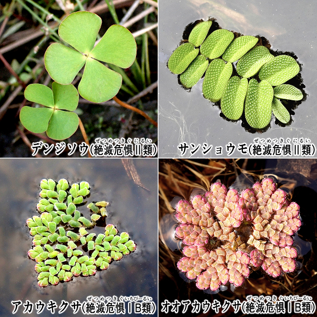 その結果、 2012年の第4次環境省レッドリストから絶滅危惧ⅠB類(EN)に指定されるようになりました。 これはアカウキクサと同じであり、 同じ水生のシダで幻の存在になりつつあるデンジソウやサンショウモの絶滅危惧Ⅱ類(VU)、 ミズニラの準絶滅危惧(NT)よりも上のランク。 動物では、 なんとゲンゴロウやタガメ、 オオサンショウウオ、 キタノメダカ(いずれも絶滅危惧Ⅱ類)より上です。
