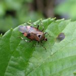 カスミカメムシ科の仲間。 オレンジ色の紋をもつ最大級のカスミカメムシ。 ヤナギやハンノキなどの樹上でハムシの幼虫を食べます。