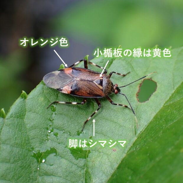 オレンジ色の紋をもつ大きなカスミカメ