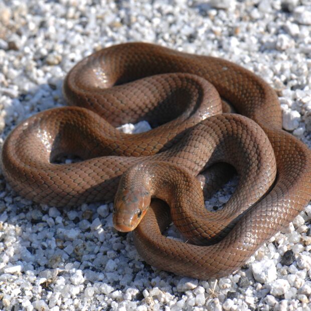 幼蛇が鮮やかな赤茶色のヘビ