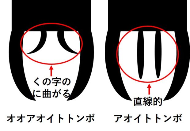 オスは、 腹部先端の尾部下付属器(びぶかふぞくき=メスの頭部の後ろをはさむ器官)の形で見分けることができます。
