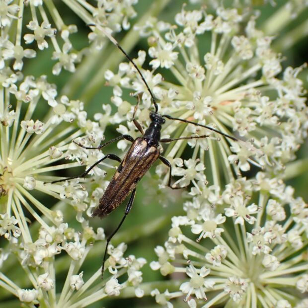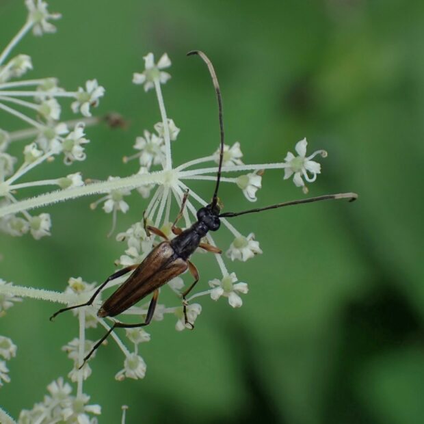 ほっそりした華奢なハナカミキリ