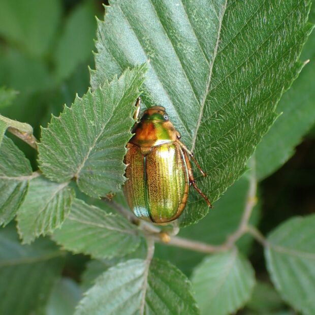 サクラの葉の上で見られるコガネムシ
