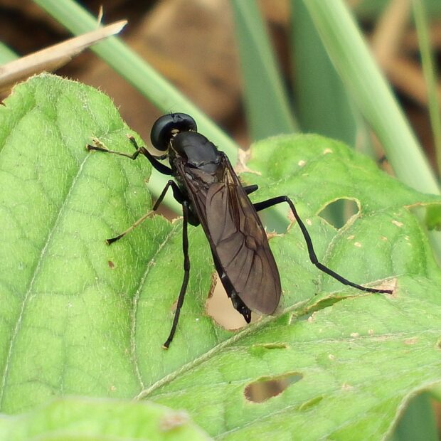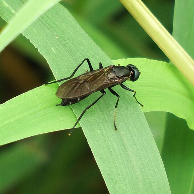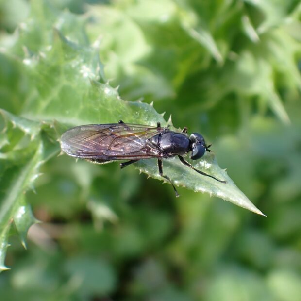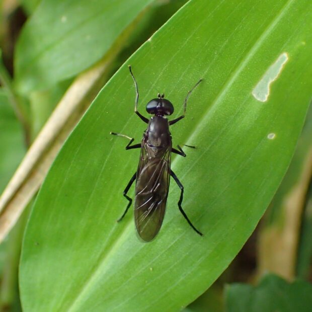 ミズアブ科の仲間。 野菜くずの捨て場、 畜舎などで見られます。 コウカは「後架」と書き、 トイレの意味。 トイレで発生するため「ベンジョバチ」と呼ばれます。 体は全体に黒っぽく、 腹部に白い部分があります。 家庭用コンポストなどで発生し、 腐敗物の分解を助けます。