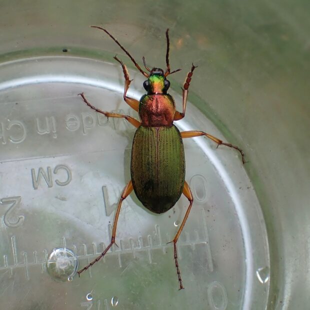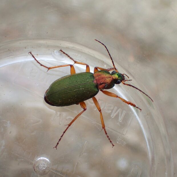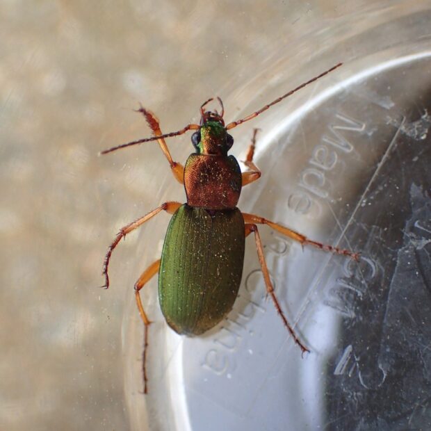 緑色のはねをもつ美しいアオゴミムシ