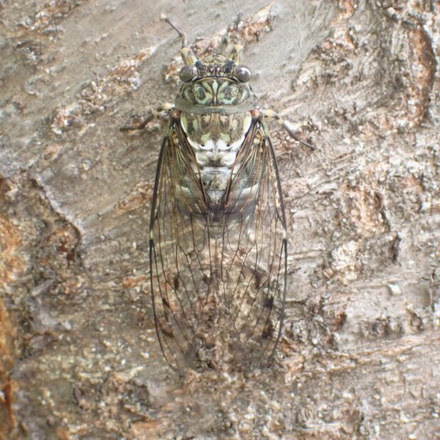 「ミーン・ミンミンミン・・・」と夜明けとともに鳴きはじめ、 夕方まで鳴き続けます。 東日本では都市部の緑地にたくさんいますが、 西日本では平地ではほとんど見られず、 山地で見られます。