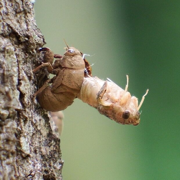 ニイニイゼミは低い所で羽化をすることが多いので観察しやすいです。 日が暮れてから羽化を始めますが、 早朝に見られることもあります。 (写真は同じ個体ではありません。 )