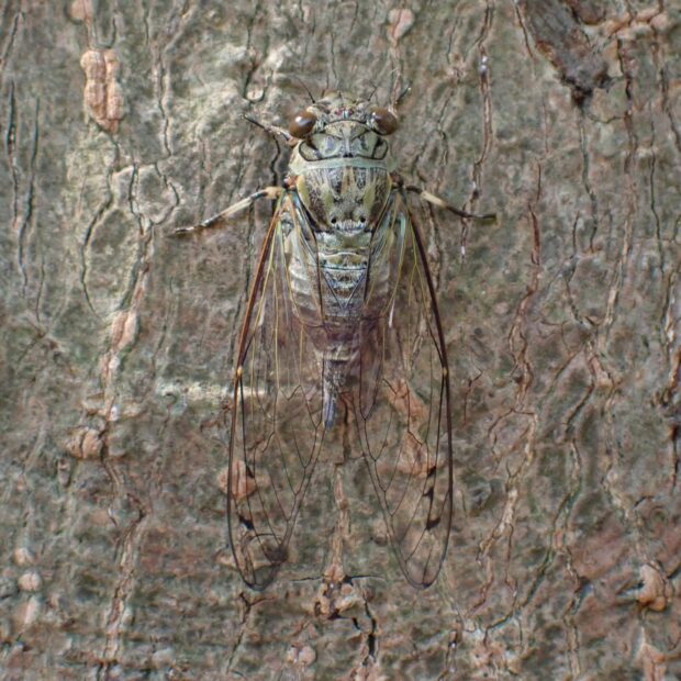 「オーシーツクツク、 ツクツクボーシ・・・♪」と、 複雑で音楽的な鳴き声のセミ。 すらっとした警戒心の強いセミです。 市街地の公園でも見られ、 8月中旬頃から活発に鳴き始めます。 夏の終わりを告げるセミですが、 近年、 現れるのが早くなってきました。