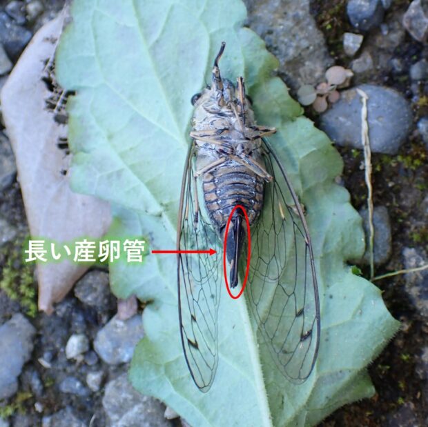 • メス。 長い産卵管があるので、 オスとメスは簡単に見分けられる。