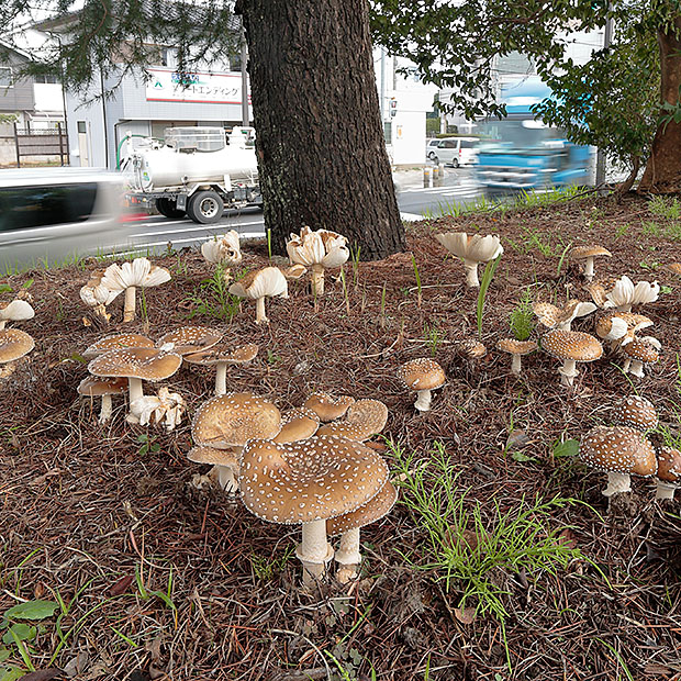 見られる場所 : アカマツやヒマラヤスギなどのマツ科の樹木の近く