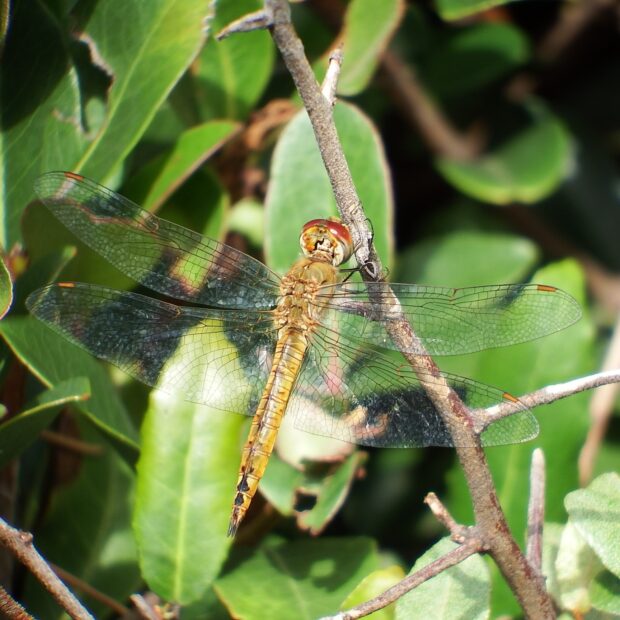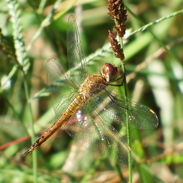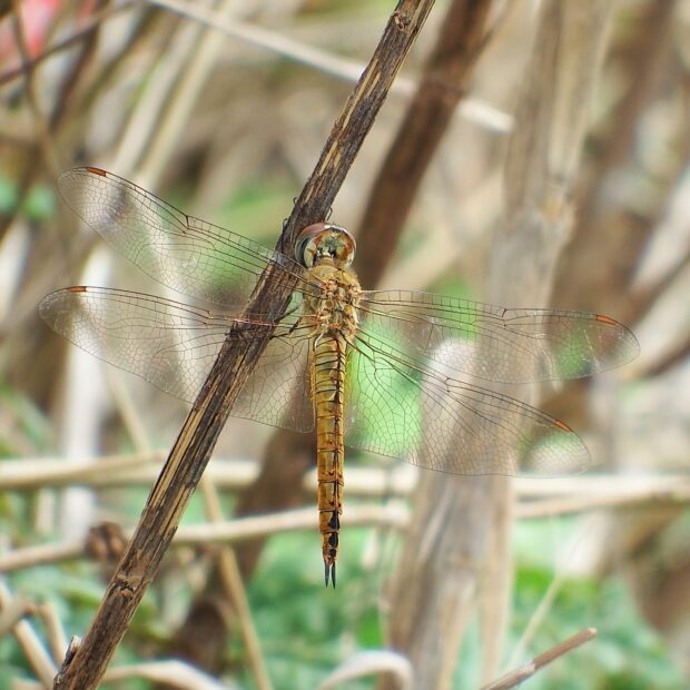 南国のトンボ。 開けた草地などで群れて飛んでいます。 南の地方から、 世代交代をしながら北へ北へ、 一方通行の旅。 関東地方では冬は越せずに死んでしまいます。