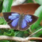 ムラサキツバメは後ばねに尾状突起(びじょうとっき)があります。