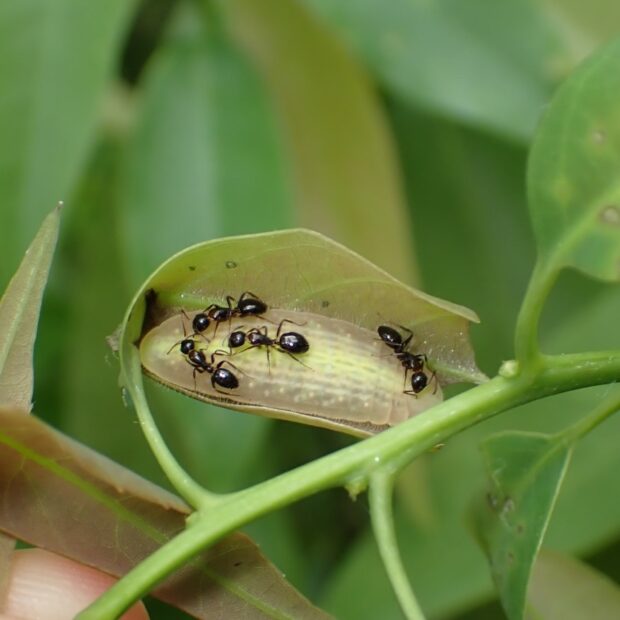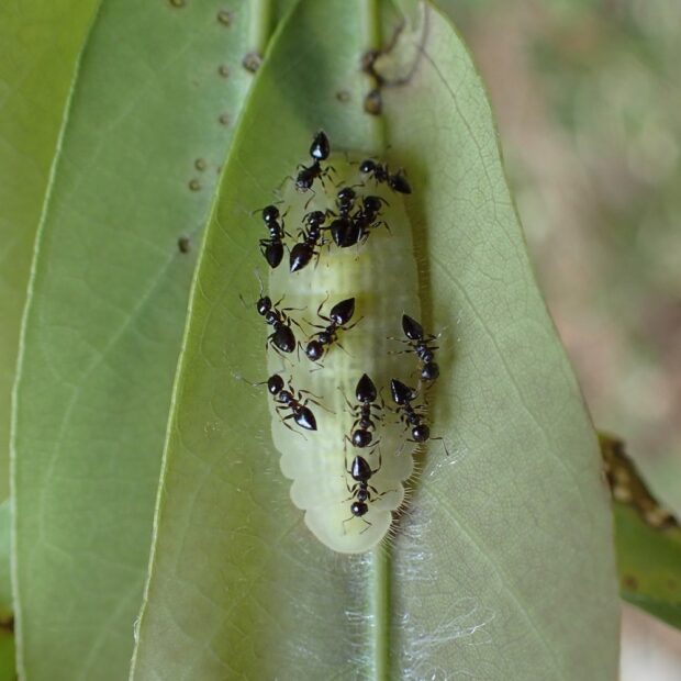 • 幼虫。 アリは大切なガードマン。 敵がくると追っ払う。