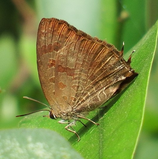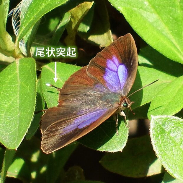ムラサキシジミは後ばねに尾状突起(びじょうとっき)がありません。