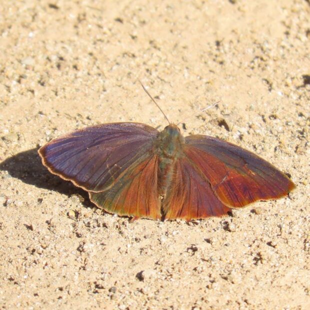 • オス。 暖かい日は飛ぶ。 青紫色部がメスより広い。