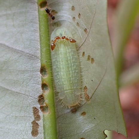 • 幼虫は栄養豊富な蜜を出してアリに与え、 天敵から守ってもらう。
