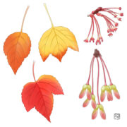 3月下旬、 モミジの新芽が芽吹くころにあらわれ、 集団生活をおくります。 春は、 メスがどんどん幼虫を産んで数を増やします。 夏には越夏型という平べったい形の幼虫となり夏眠状態になります。 モミジで見られる2つの型をもつというのが名前の由来です。 (MT)