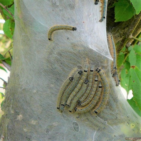 • 糸で作った幼虫の大きな住みかは目立つ。