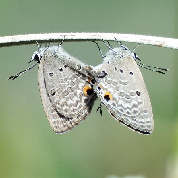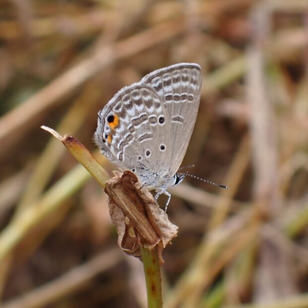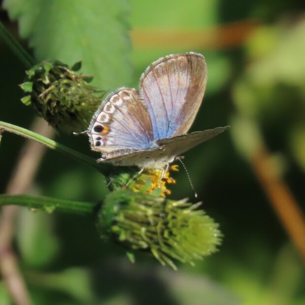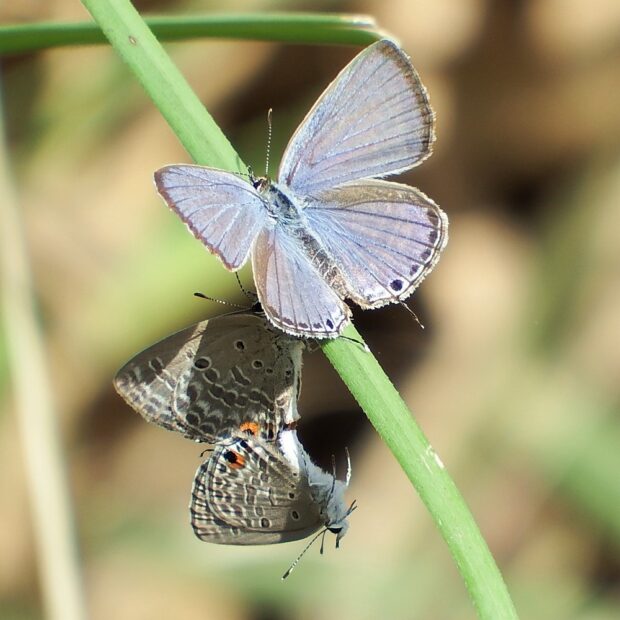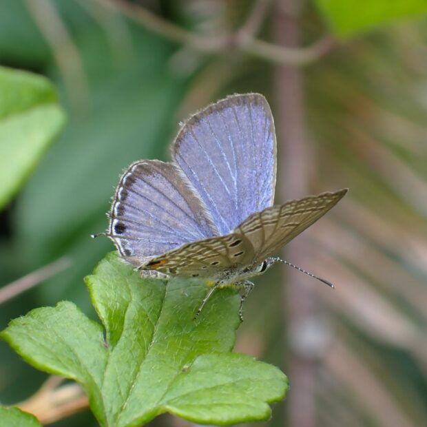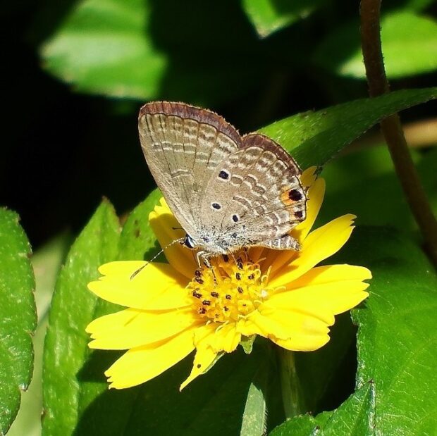 幼虫がソテツの新芽や若葉を食べるシジミチョウ。 ソテツや周辺の花の周りをひらひら飛んでいます。 南方系のチョウですが、 分散力が強く、 関東地方まで分布を拡大しています。