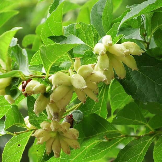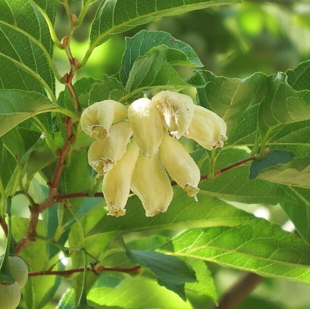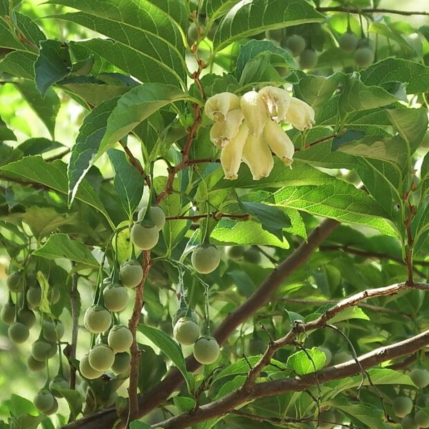 エゴノキの枝先にバナナの房?ネコの足?のようなものがついています。 エゴノネコアシアブラムシが作った虫こぶです。 アブラムシは、 7月頃、 エゴノキからアシボソという草に移動し、 また、 秋にエゴノキに戻ってきます。