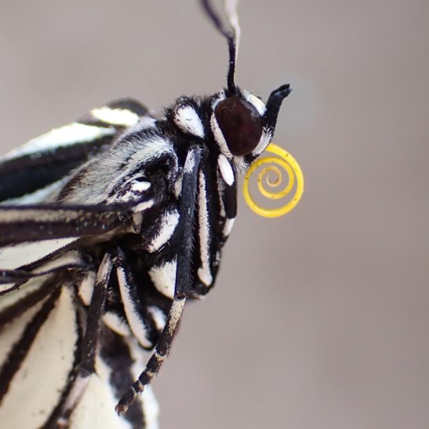 • 黄色い口吻(こうふん)は、 普段はクルクル巻いている。