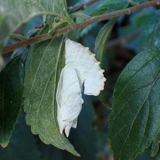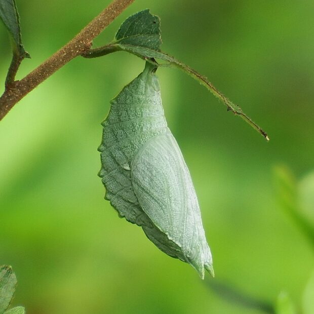 • 蛹。 緑色で目立たず、 見つけることは難しい。