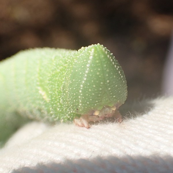 • 幼虫の顔。 頭がとがり、 おむすび🍙のような形。