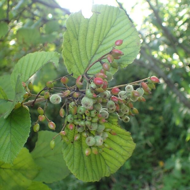 実にできる毛の生えた虫こぶ。 5月頃にあらわれるガマズミミケフシタマバエが産卵することによってできたものです。