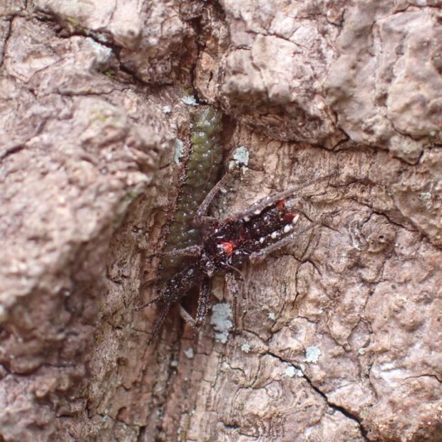 • ヨコヅナサシガメ幼虫が卵を食べる。