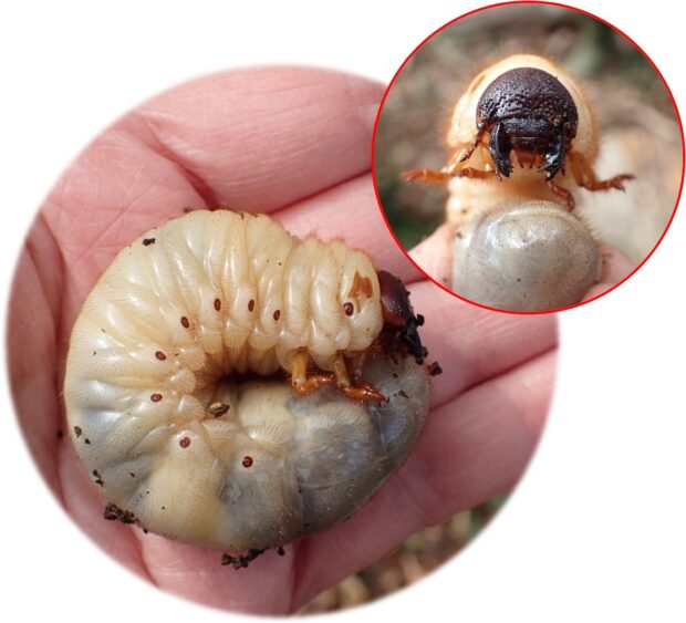 • 幼虫の体は毛深く、 頭はこげ茶色、 お尻は横に割れる。