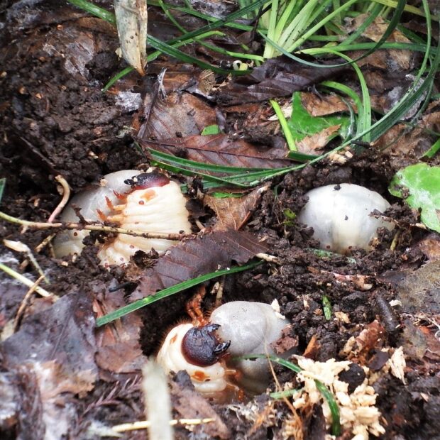 • カブトムシ幼虫3兄弟が仲良く越冬中。