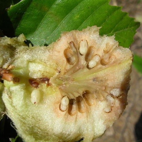 • 虫こぶの中はスポンジ状で柔らかく、 たくさんのタマバチの幼虫がいる。