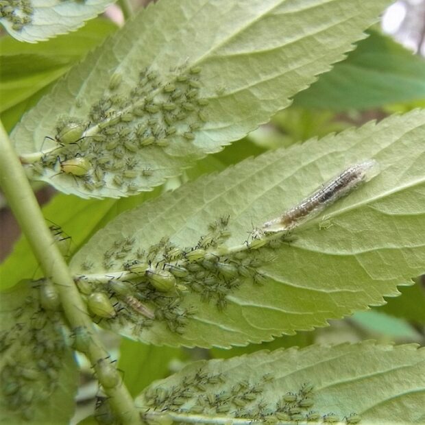 ニワトコにびっしりつくアブラムシ