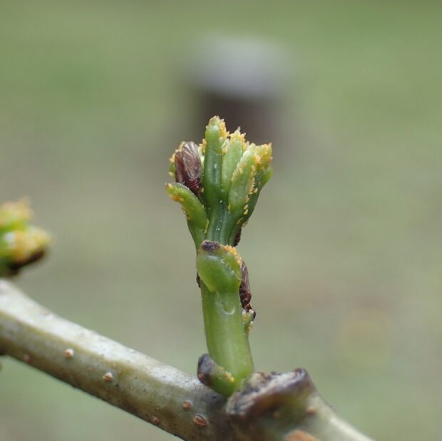 • 沢山のキジラミに汁を吸われ、 新芽は元気がない。