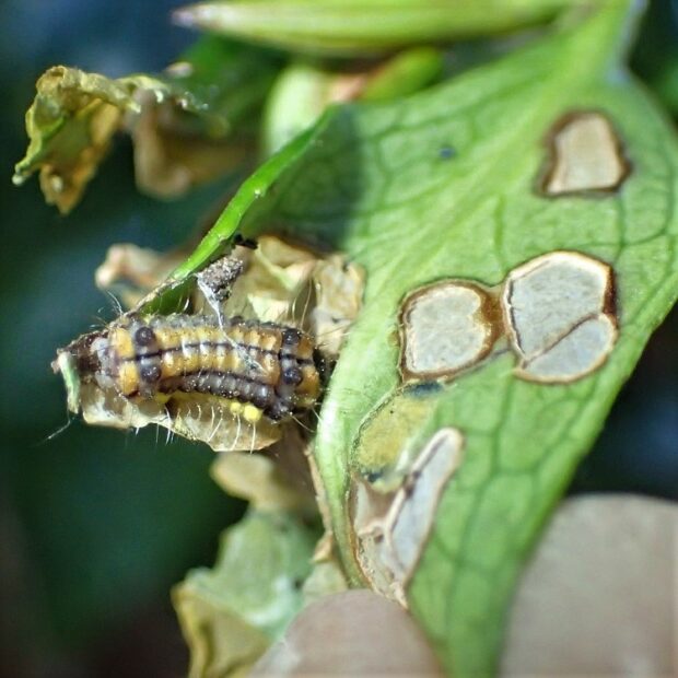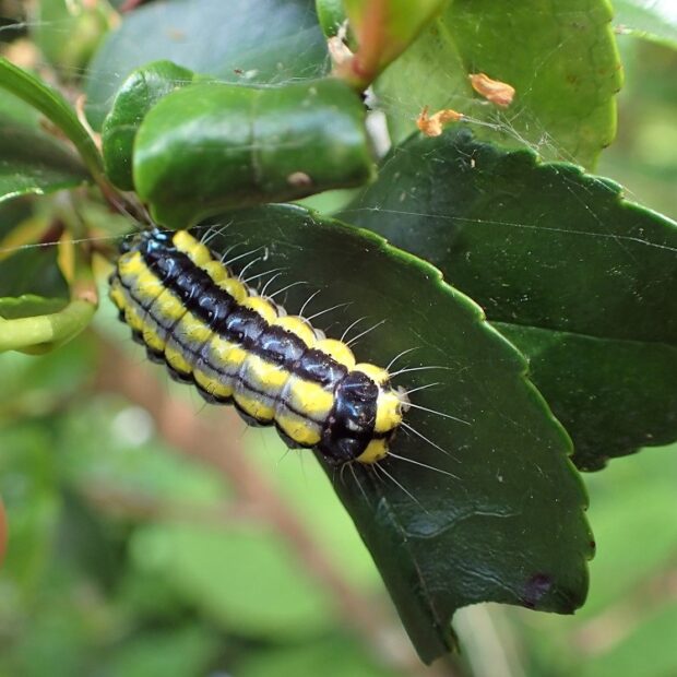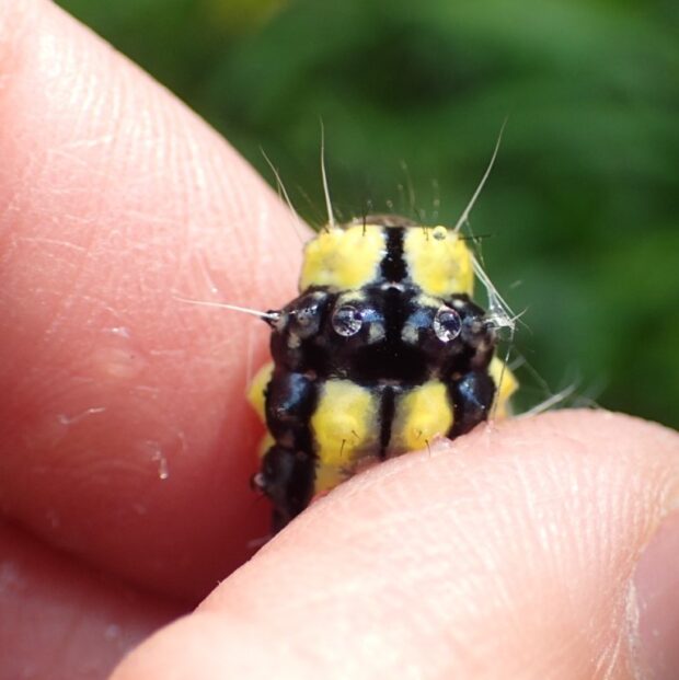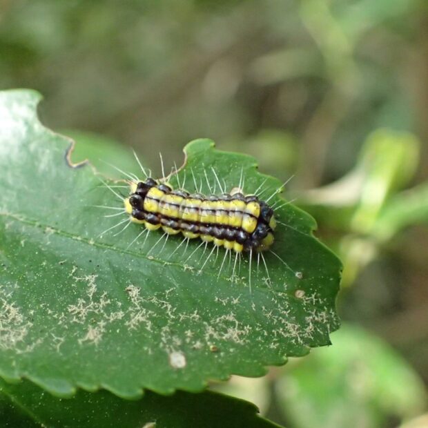 幼虫は、 危険を感じると体から毒のある粘液を出し、 それが皮膚につくとかゆくなります。 幼虫は触らないでください。