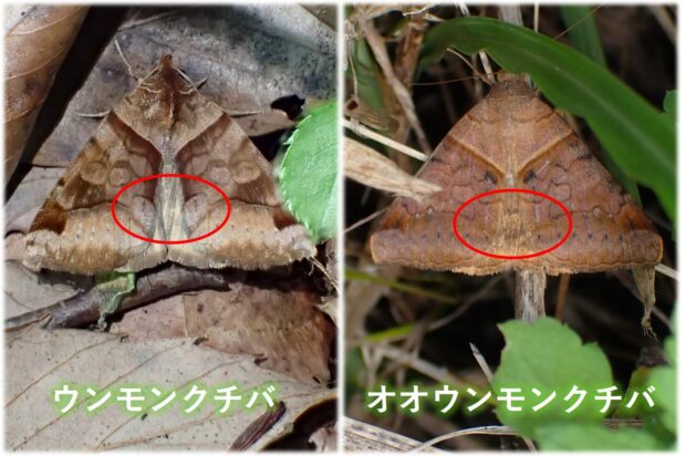 ウンモンクチバは前ばねの四角い紋がはっきりしていますが、 オオウンモンクチバは不明瞭です。