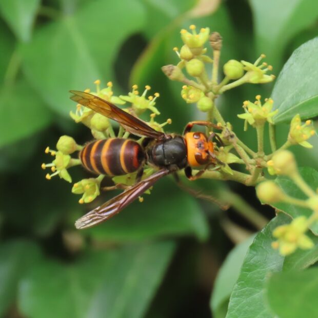 刺されると激痛が走り、 命にかかわることがあります。 8~10月はスズメバチの被害が多くなる季節ですので、 巣には近づかないよう特に注意してください。 黒いものに攻撃してくるので、 黒い服装は避けましょう。 ハチがカチカチといわせながら、 近づいてくると、 慌てないでその場からすぐに離れましょう。 ハチを手で払わないようにしてください。 万が一、 刺された場合は、 傷口を流水で洗い流し、 息苦しさなど様子がおかしい場合は、 一刻も早く病院で診察を受けてください。