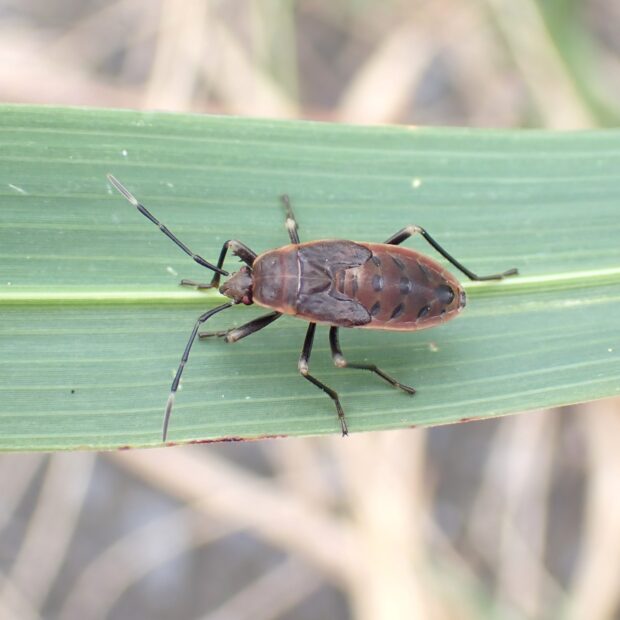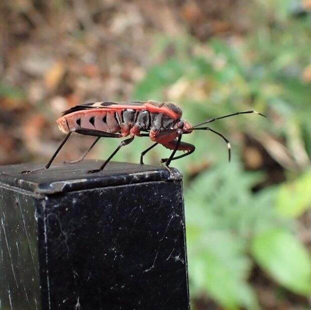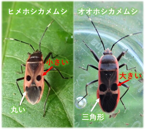 ヒメホシカメムシと似ていますが、 オオホシカメムシの方が大型で体が長いです。